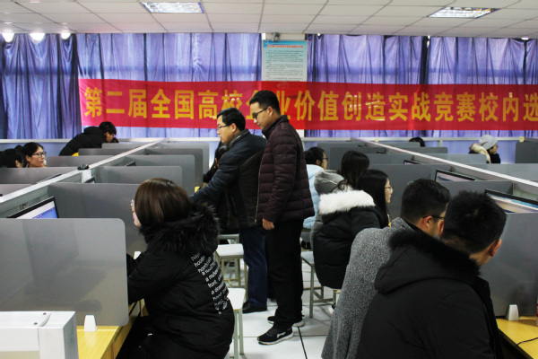 比赛以组队的形式,由每组队伍中的四名学生模拟经营一家股份公司,通过互联网进入大赛专用平台,从战略规划、投资选址、物资采购到人员招聘、薪酬设计、生产研发、市场营销、产品销售以及投资、融资、股利分配等一系列的生产经营决策、投融资决策、分配决策的制定执行。比赛需进行6期经营,共耗时6天。每一期操作一天内完成,系统于次日统一定时结算,生成学生企业的经营结果及财务报表。四个学生分别担任企业的CEO、财务总监、运营总监、市场总监。比赛开始后,各组选手屏气凝神,认真地阅览着模拟公司相关内容,思索着经营方案与管理之道。在对模拟公司进行简单的分析之后,各组队员明确分工,有人负责计算成本与利润,有人负责验证模拟方案的可行性……时间一分一秒地流逝,比赛也愈发紧张,每一期经营结束都极大刺激着选手们紧绷的神经,或调整方案,或重新规划思路,赛场上各团队间微小的交流声更是增添了比赛紧张、严肃的气氛。中午十二点,在工作人员的提醒下,各组选手有序离场,这场充满对抗性的头脑竞技选拔赛终于落下帷幕。