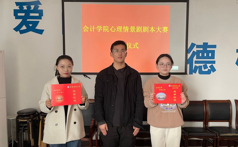 比赛经过初赛,评委评审等环节,21财管1班刘涵的剧本《我想回家》获得一等奖,21学硕张轲的剧本《交换》和21学硕陈忆梅的剧本《我有一个抑郁症朋友》获得二等奖,17财管4 班余钊的剧本《回家》、21资评0班胡雨婷、杨珂的剧本《小事》,21会计3班吕静、李文武的剧本《去发光而不是被照亮》获得三等奖。学院将依据本次比赛结果,选定优秀心理剧剧本进行排练以参加学校心理情景剧大赛。
